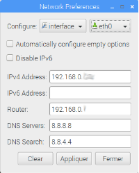 Il est recommandé de fixer l’adresse IP de votre “Raspberry”.