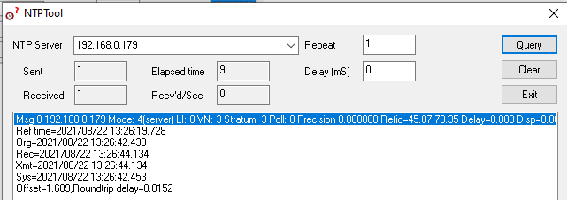 ans le champs “NTP Server” et cliquer le bouton “Query”.