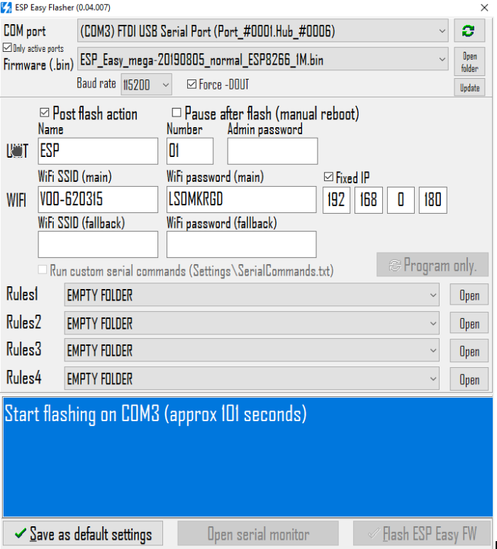 Dans le dossier de l’archive exécuter le programme “ESP.Easy.Flasher.exe”.